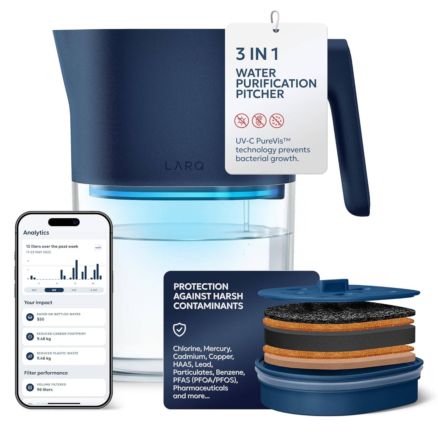 PureVis 3-in-1 purifying water pitcher with advanced filtration*