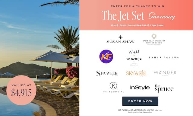 Picture this: sun on your skin, sand between your toes, and sparkling jewelry catching the light as you unwind by the water at Pueblo Bonito Sunset Beach Golf & Spa Resort in Cabo. The Jet Set Giveaway is all about relaxing, soaking up the sun, and enjoying a little bit of luxury in every moment. Enter the giveaway for a chance to win this dreamy escape and make it yours.